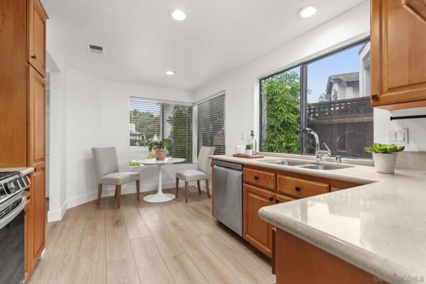 PERFECT GARDEN LOVER'S HOME! This Chic Townhome Lives Like a Stand Alone Home with its Indoor/Outdoor Livability! Architecturally Significant with a Spacious Light Filled Interior & Open Floor Plan featuring Two En-Suites Upstairs with Vaulted Ceilings & Walk-in Closets! You will Love the Wide Plank Floors throughout, Updated Kitchen with New Stainless Appliances, Large Dining Room & Stunning Living Room with Gas Fireplace & French Doors Opening onto a Fabulous Patio & Private Yard! Whether You Love to Garden or Desire Room to Play & Entertain Al Fresco, the Yard is Exceptionally Large, Lush & Low Maintenance! Ideal Central Location offers a "suburban vibe" within Tecolote Canyon- adjacent to USD & only mins to Popular Bay Park Eateries, Mission Bay & Fashion Valley! Community Saltwater Pool & Spa offers a Resort-like Ambiance! Miles of Hiking/Biking Trails are right outside your door! Come Live the Good Life! University Canyon East is an Award-Winning Community designed by Santa Barbara Architect Barry Berkus, known for his Signature Trends of High Ceilings, Natural Light, Open Spaces & Fluid Connection with the Outdoors.