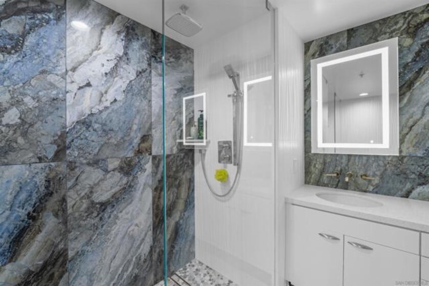 Located in the heart of the Marina District, this expansive one-bedroom residence features an open floor plan complemented by a private balcony that showcases dramatic, panoramic vistas. Provides flexibility for easily reverting the space to a two-bedroom layout. The kitchen is perfect for entertaining within the open-concept living and dining area. The primary suite serves as a true sanctuary, featuring a spa-like marble bathroom that is both luxurious and striking. Additionally, it boasts a walk-in closet and offers breathtaking views that greet you every morning. Renaissance has recently added a street-level lobby, new community lounges and provides an array of resort-style amenities, including 24-hour gated security, a front desk concierge, event spaces, and pool, spa, and barbecue areas. Residents love the convenience of the ground floor retail with Vitality Tap Juice Cafe, Postal Annex (convenient for dropping of Amazon returns), a massage salon, Vases nail salon and more. Enjoy the convenience of being just a short stroll away from an array of attractions including 14 acres at Seaport Village, the waterfront Rady’s Shell, Petco Park, 48 blocks of Little Italy, Gaslamp Quarter, and a host of exciting year-round events!