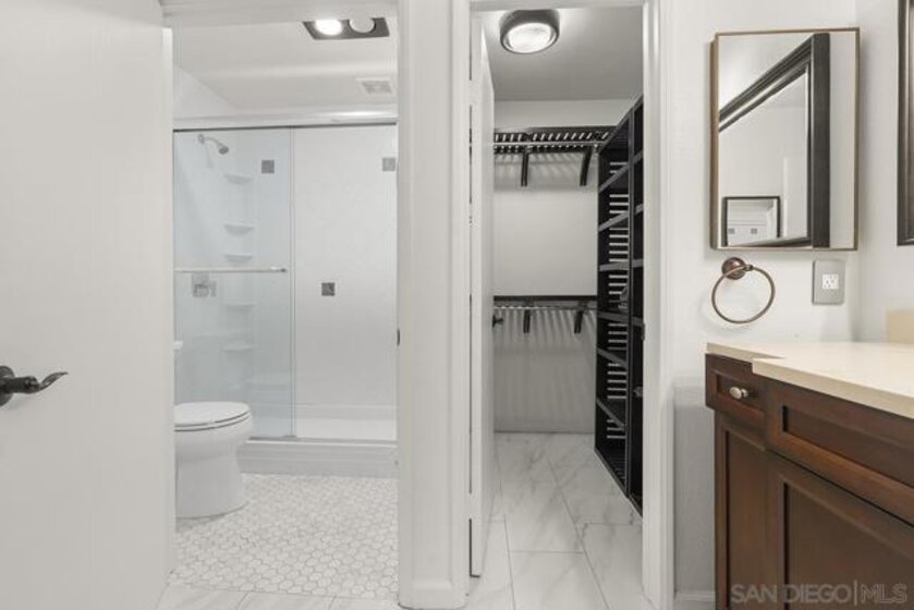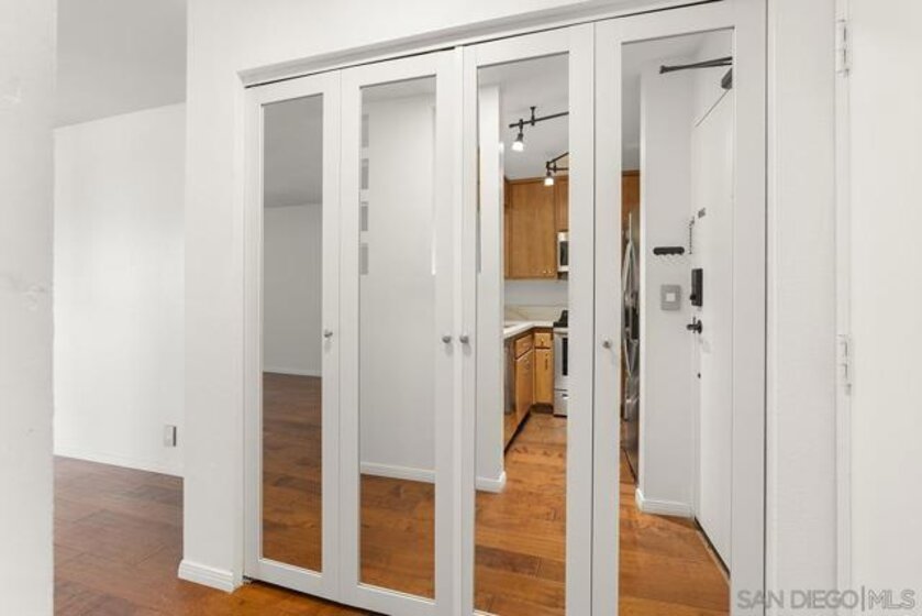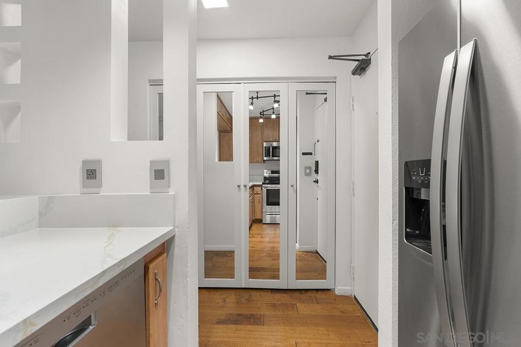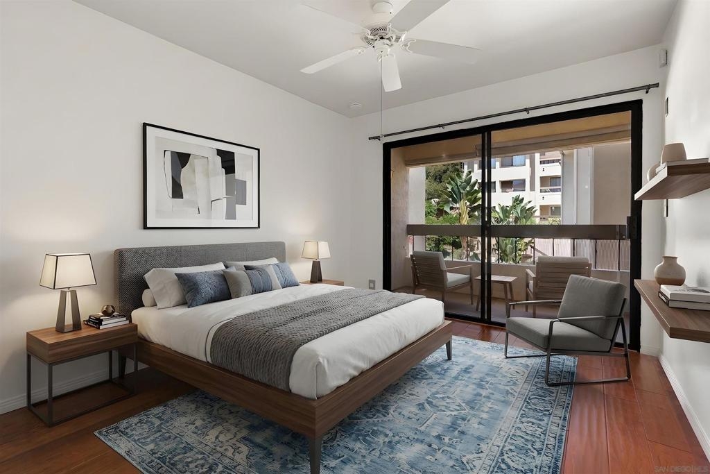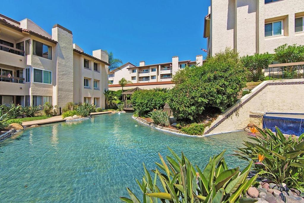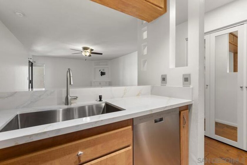 Don’t miss this beautifully remodeled condo in the heart of Mission Valley. Perfect for a first-time buyer or investor, this inviting home is tucked away in a quiet area of the community, overlooking a serene interior courtyard and peaceful pond with a water feature. Enjoy a cheery balcony with access from both the living room and bedroom—an ideal spot to relax and unwind. Inside, the highly updated interior features fresh paint, engineered birchwood plank flooring, ceiling fans in both the living room and bedroom, plus air conditioning and a Nest thermostat. The upgraded kitchen shines with newer cabinetry, quartz countertops, and stainless-steel appliances, including a refrigerator, dishwasher, stove, built-in microwave, and sink. The bathroom is equally impressive, offering a custom walk-in closet and a stacked washer and dryer. All appliances convey. Additional highlights include a covered carport space with a storage cabinet, along with a spacious hallway closet near the entry—perfect for use as a pantry. Bonus: this unit only shares one wall, and you have no neighbors below. Residents enjoy desirable amenities including a pool, jacuzzi, fitness center, sauna, and sundecks. The HOA covers water and trash, PLUS cable and Wi-Fi. The only utility you pay for is electricity. Ideally located near Fashion Valley Mall with easy access to shopping, dining, transit, and major freeways. The new owner will enjoy a front-row seat to the exciting Riverwalk Development, featuring 97 acres of parks, open space, and upcoming retail and grocery stores.