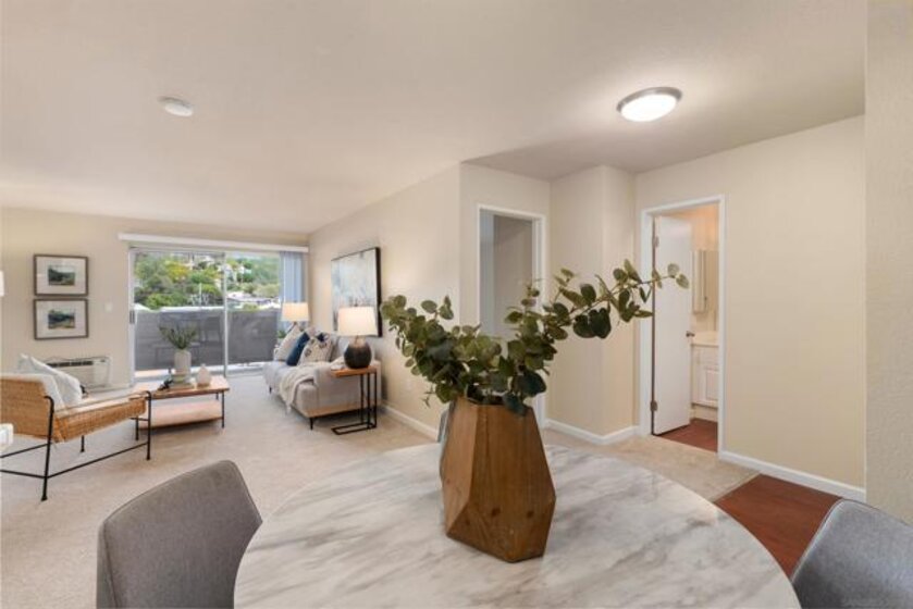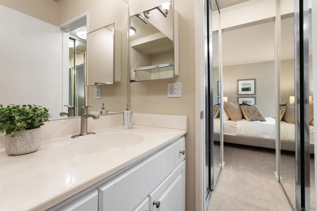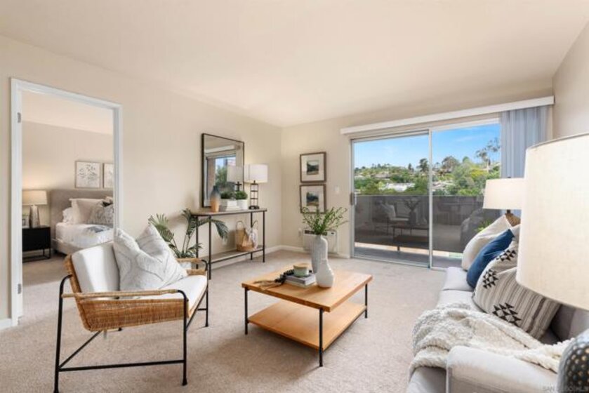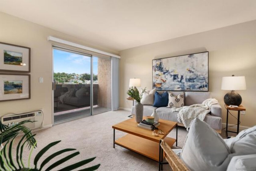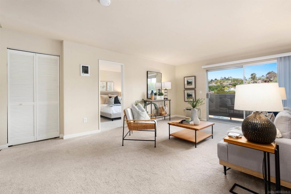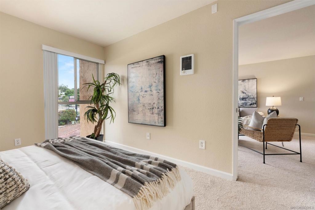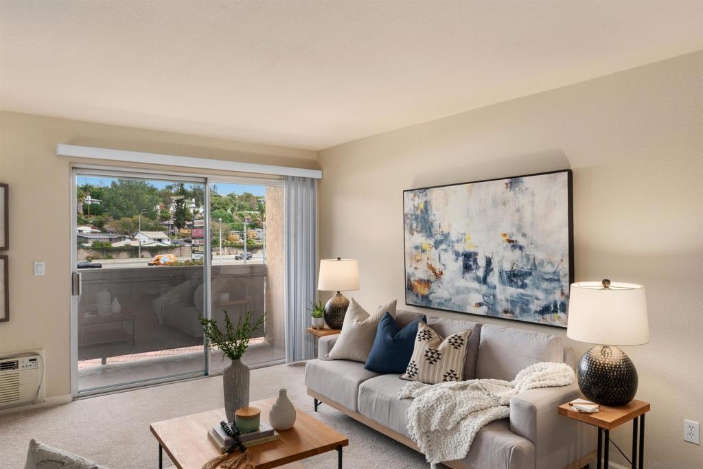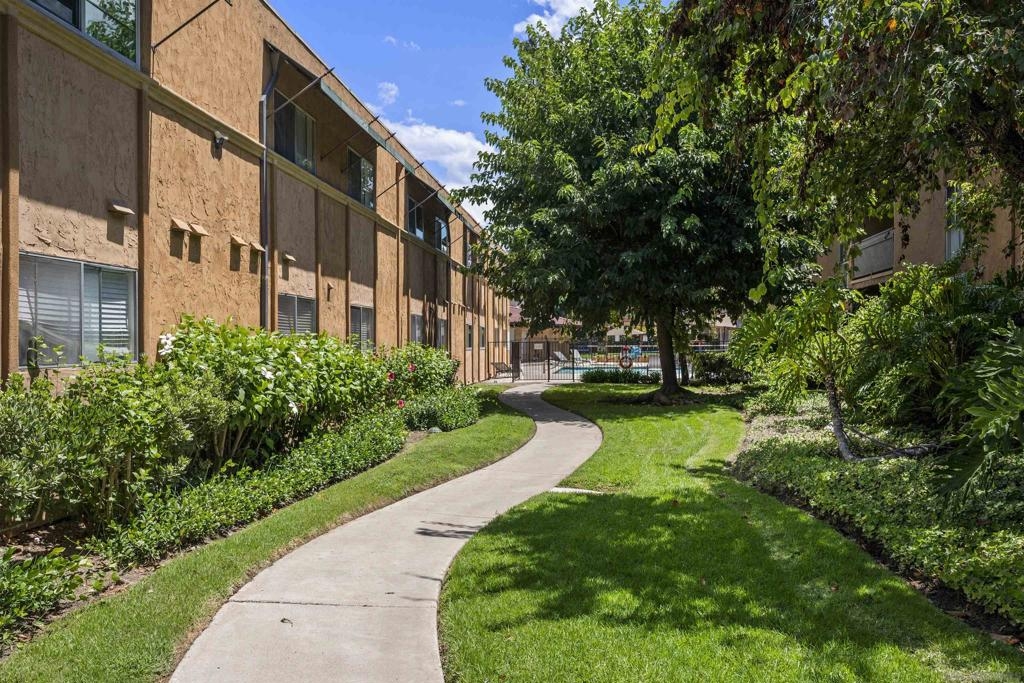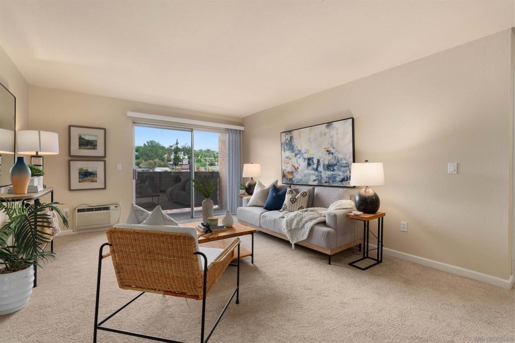 Light, bright & airy! This terrific, centrally located VA APPROVED condo is located on the top floor of the complex. The unit features a wonderful open floor plan w/ dual master suites, A NEW LARGE STACKED WASHER / DRYER IN THE LAUNDRY CLOSET, air conditioning & a good sized balcony perfect for those warm San Diego Summer nights. Among the many upgrades are fresh paint, new carpet, updated lighting fixtures and a new dishwasher. Please read the supplement for more! The complex is located close to SDSU, walking distance to the trolley and restaurants. Amenities include a wonderful pool, BBQ area and plenty of grass to play on. Welcome home!