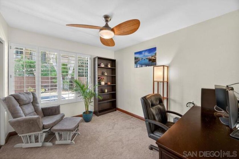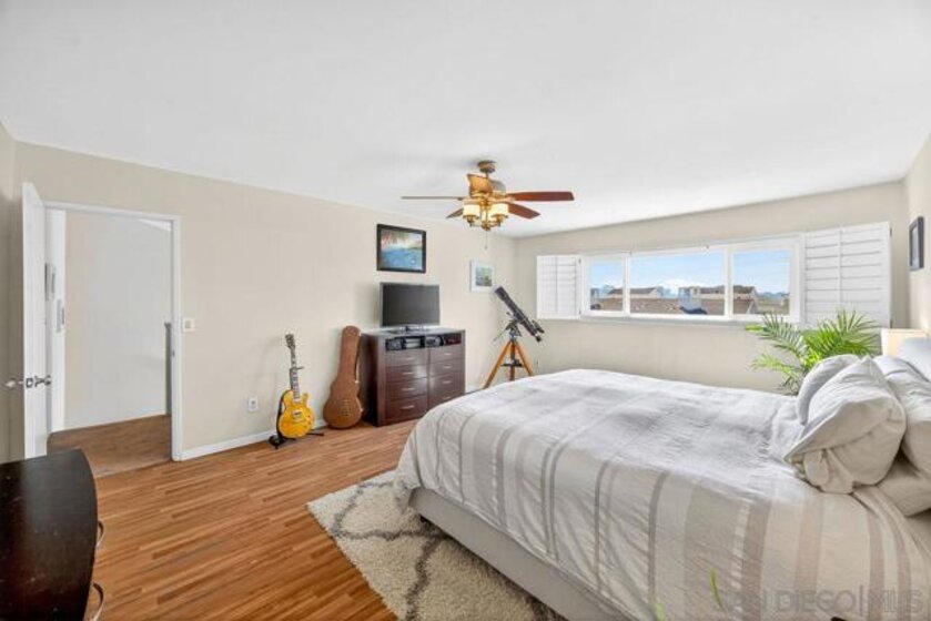 Located in the highly sought-after Fashion Hills community of San Diego, this end-unit with enhanced privacy, extra natural light, and a quieter setting. 3-bedroom, 3 full-bath home delivers a rare and versatile layout with two en-suite bedrooms, an attached 2-car garage with storage and stunning valley and ocean views. Designed for flexibility, this floor plan is ideal for multigenerational living, guests, college housing, or a work-from-home setup. The light-filled living room features a cozy fireplace and flows seamlessly into the dining area; perfect for entertaining or unwinding at home. The open-concept kitchen is equipped with granite countertops and stainless-steel appliances, opening directly to a private patio and backyard retreat complete with a jacuzzi; your go-to spot to relax and recharge. A main-level bedroom and full bathroom with dual sinks offers a highly desirable setup for guests or a private office. Upstairs, both bedrooms feature walk-in closets, including a spacious primary suite with its own en-suite bath. This home also includes a built-out storage closet in the crawl space, providing valuable and functional extra storage, something you don’t come across often and a huge bonus for keeping things organized without sacrificing living space. Residents of Fashion Hills enjoy resort-style amenities including a pool, spa, and tennis courts, all within a well-maintained community with LOW HOA dues. Centrally located near USD, Fashion Valley Mall, Mission Valley, Mission Beach, downtown San Diego, and major freeways!