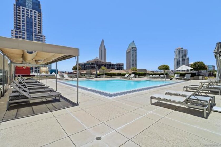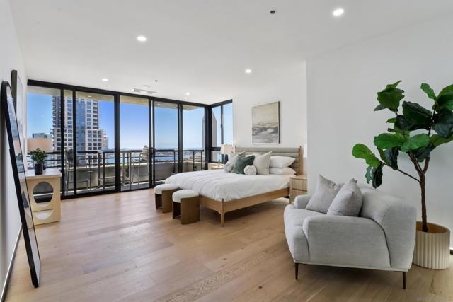 700 Front Street, #1402 welcomes you to this beautifully remodeled tower home! Luxury living inside the Meridian offers spectacular views spanning from the coast of Mexico to Point Loma, including iconic sights such as the San Diego Bay, Coronado Bridge, Island, and the legendary Hotel Del Coronado. This stunningly remodeled luxury residence features dual primary suites, ocean-view living spaces, and refined modern design. The chef’s kitchen boasts a waterfall island with microwave drawer, hidden walk-in pantry/laundry, stainless steel appliances, double-drawer dishwashers, and quartz countertops with full-height backsplash. Designer bathroom finishes, illuminated vanities, and one of the bathrooms includes a spa-inspired wet room with ocean views and remote privacy glass. The living room has a dry bar with wine fridge, custom fireplace, and mirror-accented dining wall. Elegant engineered hardwood floors, recessed lighting, trimless LED baseboards, and Bluetooth speakers set a sophisticated tone. Smart-home features include Nest thermostat, Bluetooth lighting, USB outlets, modern electric panel and sleek concealed fire sprinklers complete this exquisite home. Enjoy resort-style amenities in one of San Diego’s most prominent fixtures in San Diego’s skyline. Residents at The Meridian enjoy 5-star white-glove service, including valet parking, 24/7 concierge, doorman, on-site management, and exclusive amenities such as: 2 deeded parking spots, 52 guest parking space, the Plaza Level consists of the Fitness centers, Heated pool, spa, and sauna, 5 rentable guest suites and the Meridian Room that is available for catered entertainment. EV charging stations, Service elevator and personal storage. Specialty shops and restaurant on the first floor. Experience unmatched comfort, privacy, and sophistication in a building that rivals East Coast grandeur—with the laid-back luxury of San Diego coastal living.