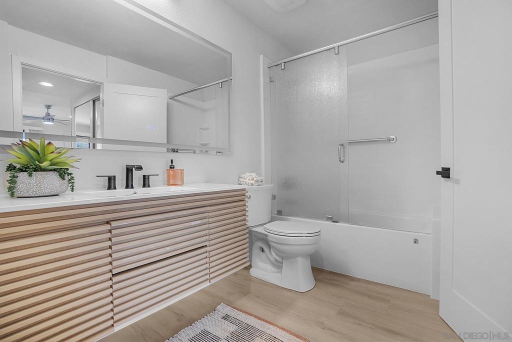 WELCOME HOME to this gorgeous, rarely available 2-bedroom, 1-bath remodeled gem, just under 1,000 sq. ft w/ a Community Pool & Jacuzzi and MORE!. This private end-unit condo offers views of Cowles Mountain. Located near SDSU, Mission Trails Regional Park and the golf course, the home features a spacious double size patio—perfect for BBQs and outdoor entertaining. Recent upgrades include new flooring, appliances, cabinetry, countertops, lighting, and fresh interior paint, creating a modern, move-in-ready feel. The thoughtfully designed floor plan also includes in-unit laundry and a cozy fireplace. The centrally located community provides easy access to shopping, dining, entertainment, and major freeways. Resort-style amenities include a pool, spa, sauna, clubhouse, and gated w/ one underground parking space. A truly special opportunity in the Lomas Del Cerro complex—don’t miss it!