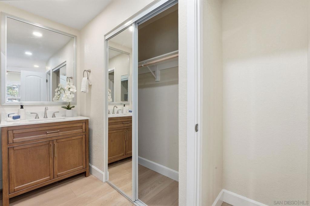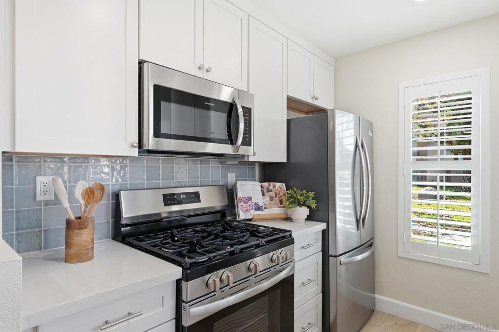 VA Approved! Welcome to the most impressive renovation you’ll see this year. Meticulously remodeled from top to bottom by the owner, no expense was spared in this $110,000+ transformation filled with custom craftsmanship and high-end finishes. Two standout upgrades you probably won’t find anywhere else in the complex: (1) A wall-mounted mini-split system with its own dedicated condenser - providing your AC, heating and cooling. (2) the owner built a second closet in the primary suite - yes, two closets in your bedroom! The designer kitchen features Quartz countertops, a porcelain tile backsplash, and premium Frigidaire appliances, including a gas range. The bright living area shines with new recessed lighting, a new Milgard sliding door, and Avalon plantation shutters that give you both light and privacy. Additional highlights include a brand new washer and dryer, and a tankless water heater. Everything is under manufacturer warranties. Across the street the city is completing a $43million renovation project on the local park. It will have an aquatic center, pickleball courts, and much more! With grocery stores and delicious eateries, like Little Sakana’s all-you-can-eat sushi, just down the street, you'll fall in love with this neighborhood and this condo. This is the home people say, “I wish I’d bought it when I had the chance.”