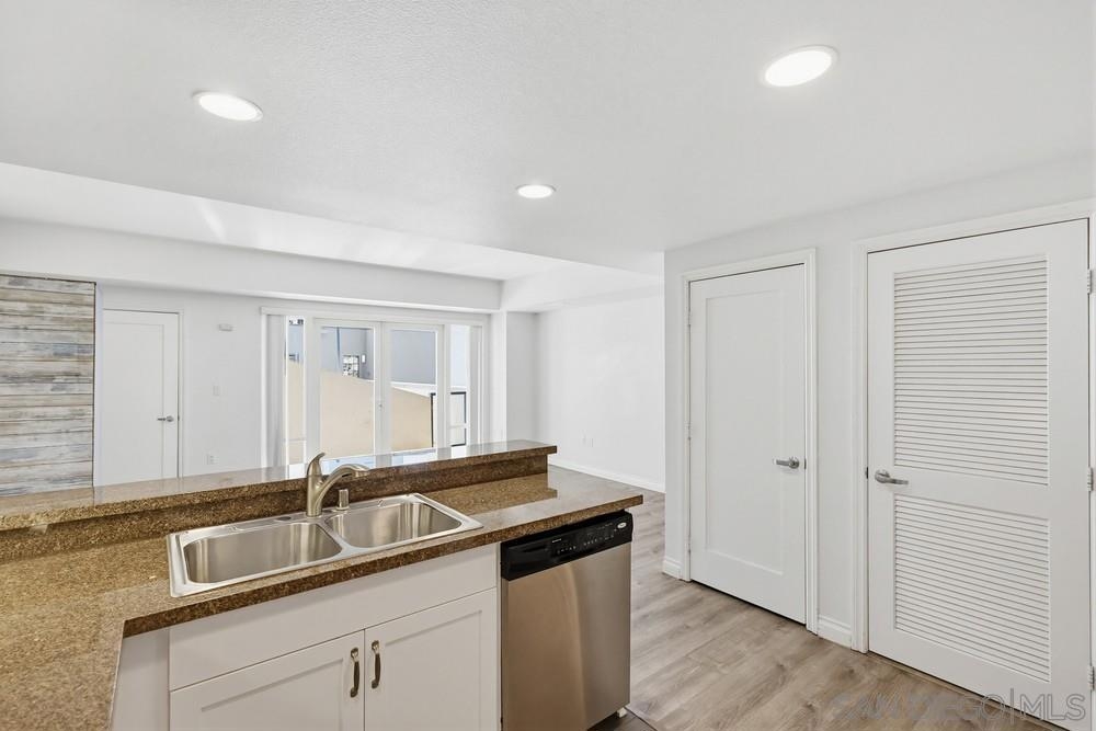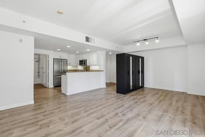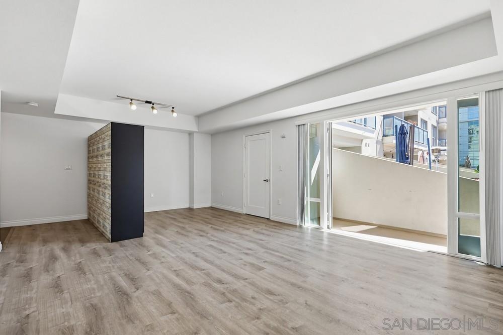 Exceptional value in downtown San Diego! One of the larger studio floor plans in the building with a spacious layout comparable to many one-bedroom units. Upgraded kitchen with granite countertops and stainless steel appliances, in-unit stacked washer/dryer, central A/C, and walk-in closet. Private balcony for quiet outdoor use. Includes a premier ground-level parking space with direct access to the lobby and fitness center. Located in the desirable Nexus community near Petco Park, Gaslamp Quarter, dining, and entertainment. Unit #201 offers approximately 734 sq. ft., making it one of the more spacious studio layouts in Nexus and highly competitive with smaller one-bedroom units. The interior is nicely upgraded and move-in ready, including a dedicated closet with stacked washer/dryer. The balcony is compact but offers excellent privacy, providing a more quiet and sheltered outdoor space. The assigned parking space is a premium ground-level location with direct access to the lobby and fitness center—an everyday convenience that stands out within the building. For buyers prioritizing interior space, functionality, convenience, and overall value, this unit presents a compelling opportunity in today’s market.