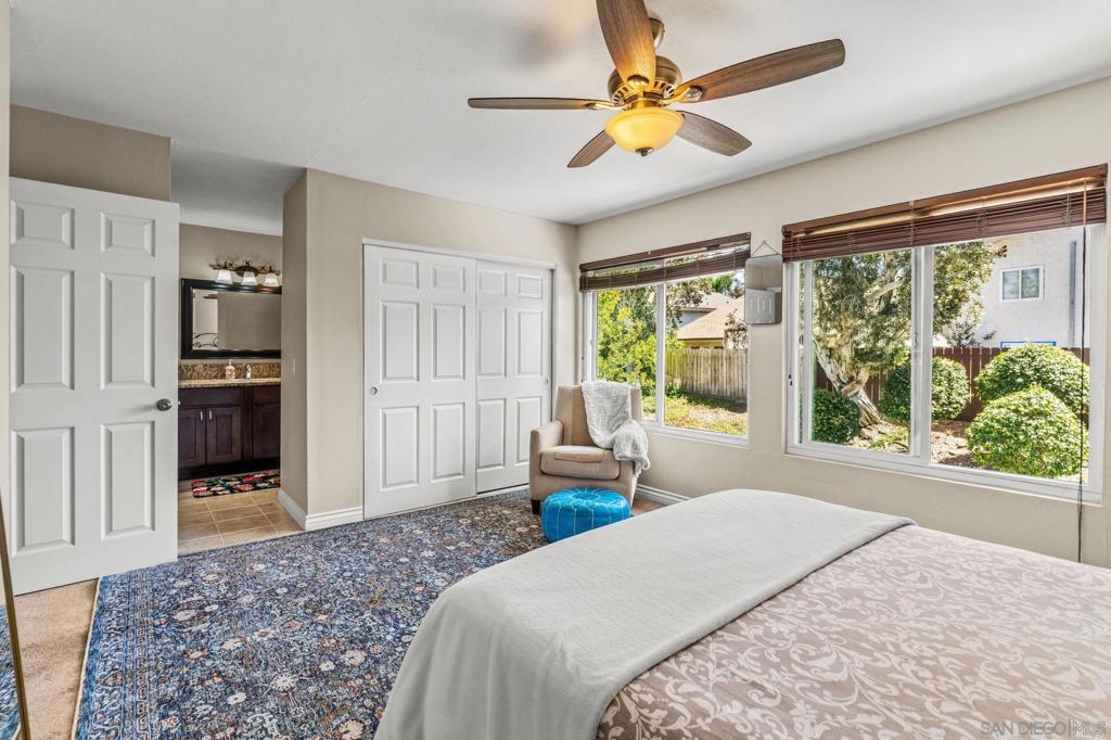 Privacy, Style, and Prime Family Location! This beautifully appointed residence is tucked away on a quiet street in the highly desirable Valley Crest community. Offering an ideal blend of comfort and convenience, the home is situated in a prime location in the heart of Northeast Mira Mesa just moments from top rated schools, parks, shopping, and dining. Meander inside to a spacious, light filled living room featuring fresh paint, a cozy fireplace, and brand new luxury vinyl plank flooring. The adjacent dining area features a sliding glass door for seamless indoor outdoor living, leading to a low maintenance, fully fenced private backyard perfect for relaxation, entertaining and enjoying San Diego’s year round sunshine. The kitchen is thoughtfully designed with granite countertops, stainless steel appliances, and freshly painted cabinetry. Upstairs, you will find four spacious bedrooms, including a tranquil primary suite with its own private ensuite bathroom. Additional highlights include a convenient main level guest bath and an attached two car garage with in unit laundry. Residents of this exceptional community enjoy premium amenities, including a sparkling pool, a basketball court, and well maintained greenbelts that offer breathtaking canyon views, completing this perfect home retreat.
