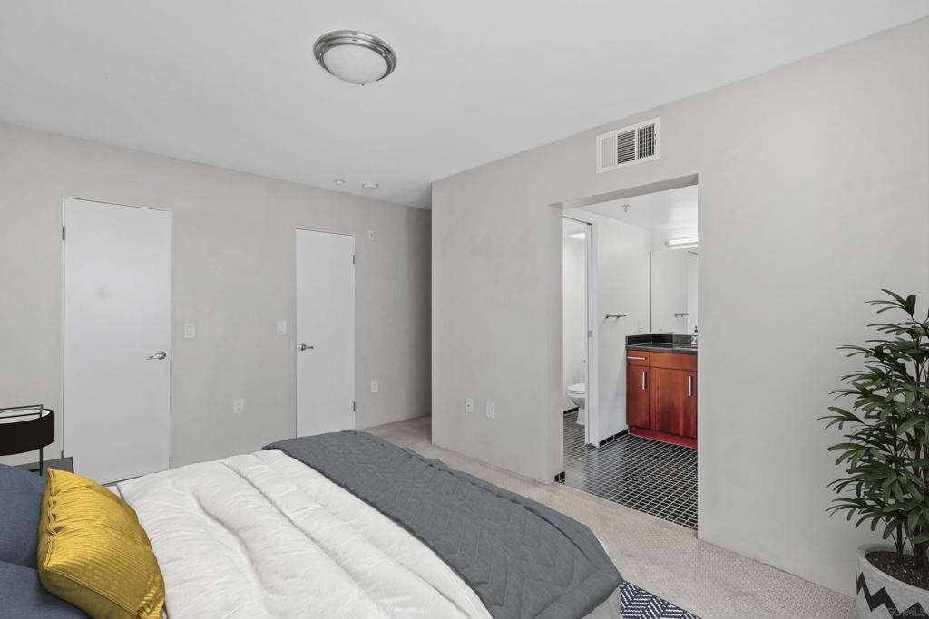 VA APPROVED! Located just 2 blocks from Downtown San Diego, this two bedroom (with optional 3rd) live-work townhouse is unlike anything on the market. Enter the gated complex from your own private two-car stacked garage (with power lift) and head to your industrial two-story loft townhouse that shares no walls or floors with anyone else in the complex, giving you unprecedented privacy in the city. Inside you're greeted by incredible modern design and abundant natural light. The large and well-appointed kitchen is the perfect space to entertain before heading out for dinner and drinks. The downstairs bedroom has dual walk-in closets and its own en-suite bathroom, finished in seductive black and white tiles. Adjacent to the kitchen you'll find a half bath perfect for guests while entertaining. Enjoy views of the Coronado Bridge from multiple rooms and the upstairs balcony. The primary bedroom along with its walk-in closet and bathroom are enormous. Keep the upstairs loft as another living space or use it as a third bedroom; the choice is yours. Laundry in-unit! Walking distance to many restaurants, breweries, Petco Park, San Diego Harbor, the Rady Shell, and downtown San Diego. Barrio Logan has quickly become one of the trendiest, most vibrant neighborhoods in all of San Diego with its rich history, colorful murals, fantastic food, and abundant entertainment. Invest here before it's too late! This truly is an excellent property and must be seen to be appreciated. Some photos virtually staged.